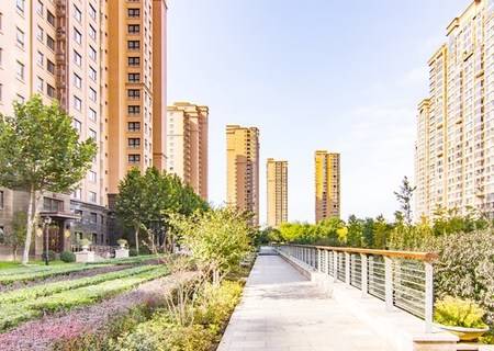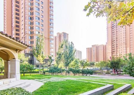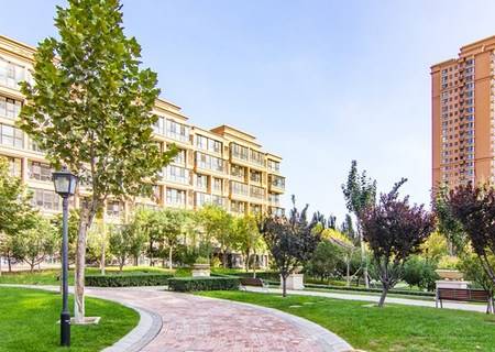 2014年社区,北京城建开发的人车分流社区,小区围合式建筑,下沉式花园,楼栋围绕着花园建设,楼间距大,采光无遮挡,保证每家每户都可以看见景色。